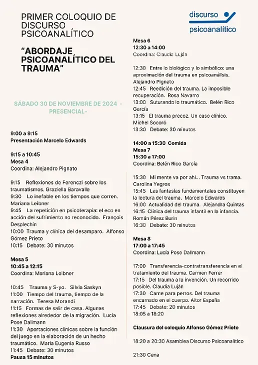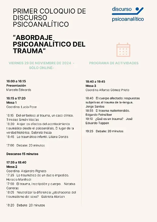 Primer Coloquio de Discurso Psicoanalítico: Abordaje psicoanalítico del trauma